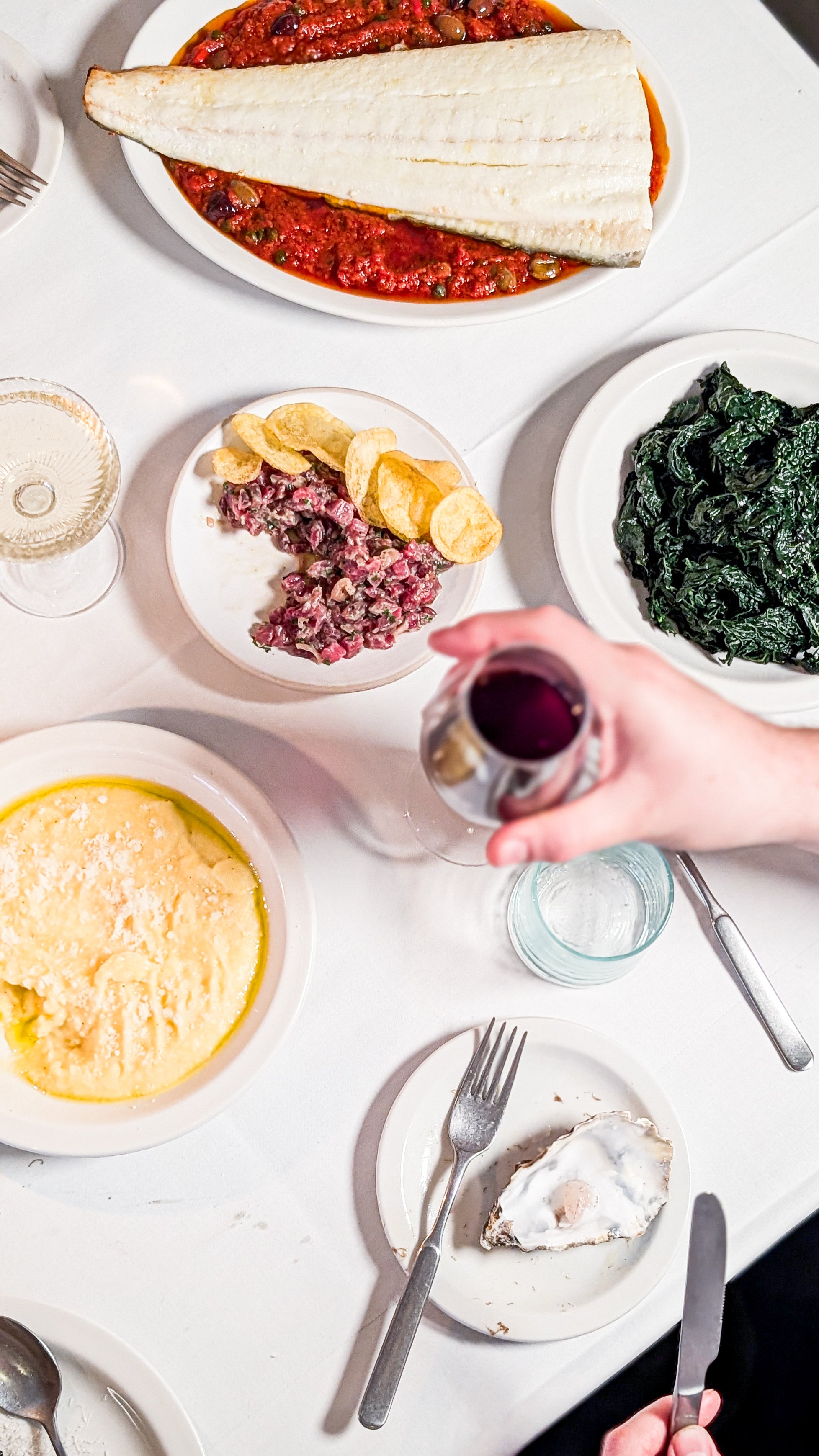 Our New Year’s Eve set menu is priced at seventy pounds per person and includes a welcome sparkling wine cocktail. Expect a feast created for elegance and joy. Focaccia with cacio e pepe butter, mortadella gilda, devilled caviar egg, tuna crudo, truffle fettuccine, Iberico pork with cotechino and lentils, Meyer lemon sorbet with Saffron Grange sparkling wine and a chocolate mousse torta to finish.